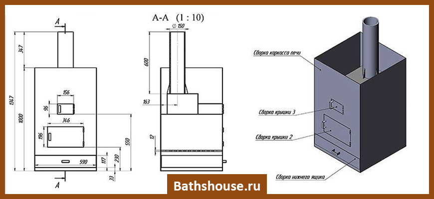 Проект металлической печи для бани с правильной установкой и организацией дымохода