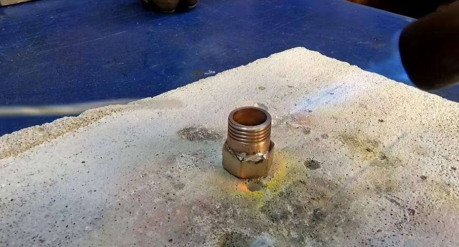 Следующим шагом на втулку накручиваем заглушку и полученное резьбовое соединение тщательно пропаиваем.