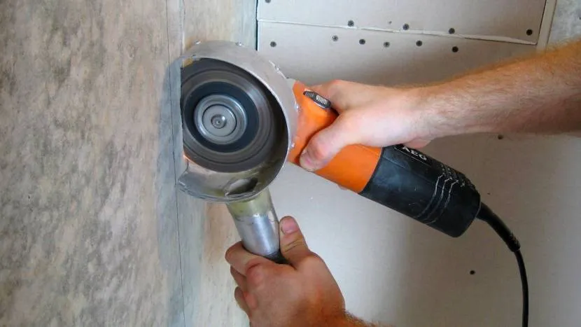 Используя для этой же задачи болгарку, необходимо будет нанести на стену две линии, выдерживая точные размеры. Проходов нужно будет сделать два. А контроль за глубиной и ровностью реза проводить визуально, удерживая инструмент полностью на весу.