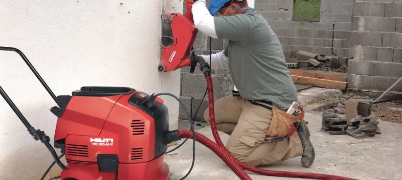 Мощная модель Hilti DCH 230 способна делать рез на глубину до 85 мм. Для сухого метода резки используются диски из армированных полимеров. А для снижения количества пыли, прибор оборудован ограничителем глубины, что актуально при этом способе штробления.