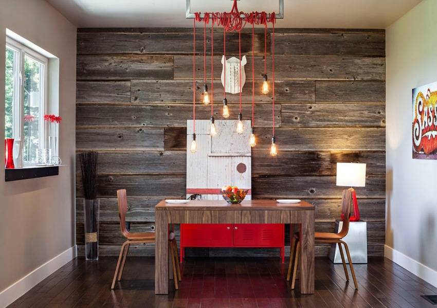 Одним из модных материалов, используемых в отделке любых по предназначению помещений, является состаренное дерево