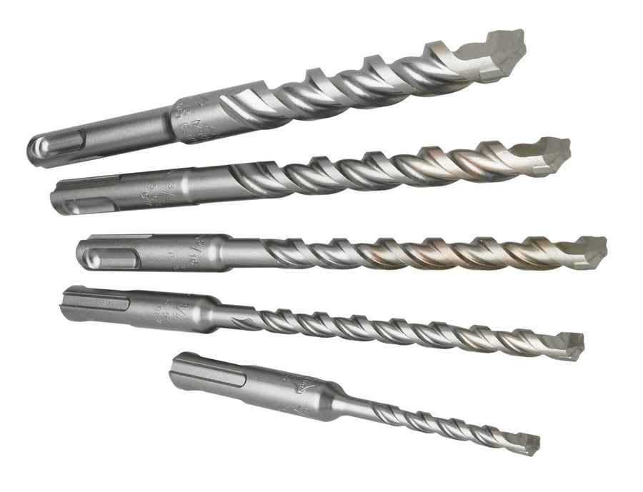 Самыми прочными являются буры, у которых спирали закручены в наименьшей степени. В магазинах самый распространенный вариант — буры для перфоратора по бетону размером 6 мм. Насадки, которые выполнены по стандарту SDS-plus, чаще всего имеют диаметр хвостовика более 10 мм. Что же касается диаметра самого расходника, то он может варьироваться в пределах от 4 до 26 мм.
