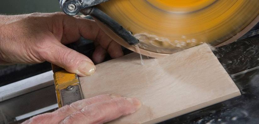 Когда осуществляется нарезка плитки, необходимо знать, что алмазный круг необходимо держать прямо, не сдвигая и четко следовать линии, которая проведена на обороте плитки.