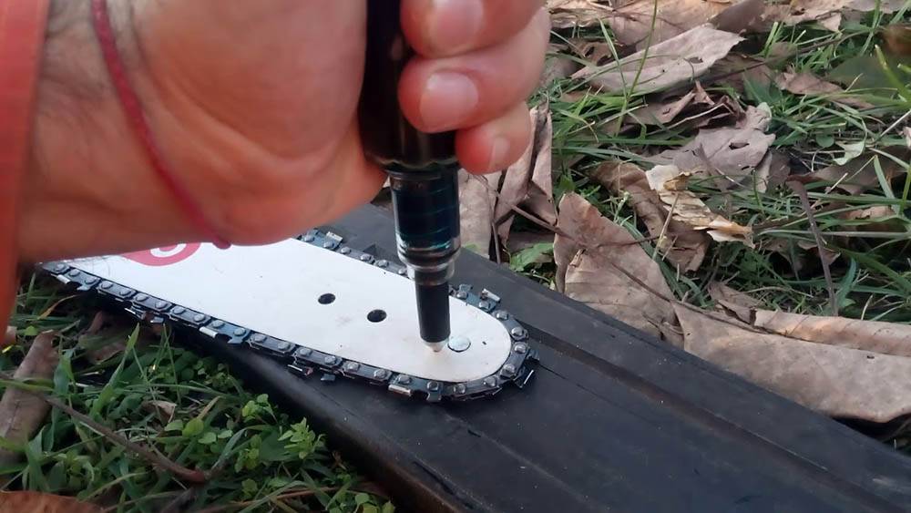 - Если оператор обнаружил, что используемый пильный элемент провис, его потребуется подтянуть. Для этого нужно поворачивать натяжитель до тех пор, пока деталь для распиловки не натянется;