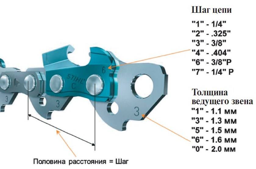 Толщина ведущего звена бензопилы является важным параметром для качественной работы инструмента. Пазы на шине пилы отличаются по ширине. Существует пять размеров, характеризующие хвостик: