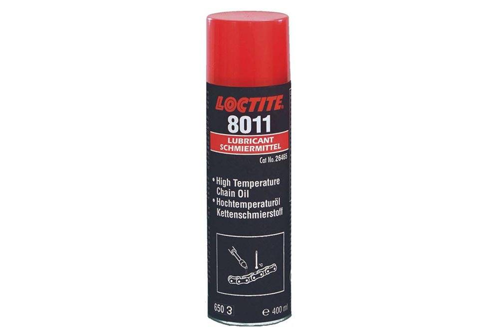Смазка изготовлена на минеральной основе, имеет в составе литиевое мыло и антизадирные присадки. Loctite 8011 наносится в виде спрея и отлично подходит для цепей, открытых шестерен, червячных передач и тросов. Состав справляется с защитой от воды, проявляет стойкость при воздействии высокого давления и центробежных сил, имеет диапазон рабочих температур -30…+170°С.