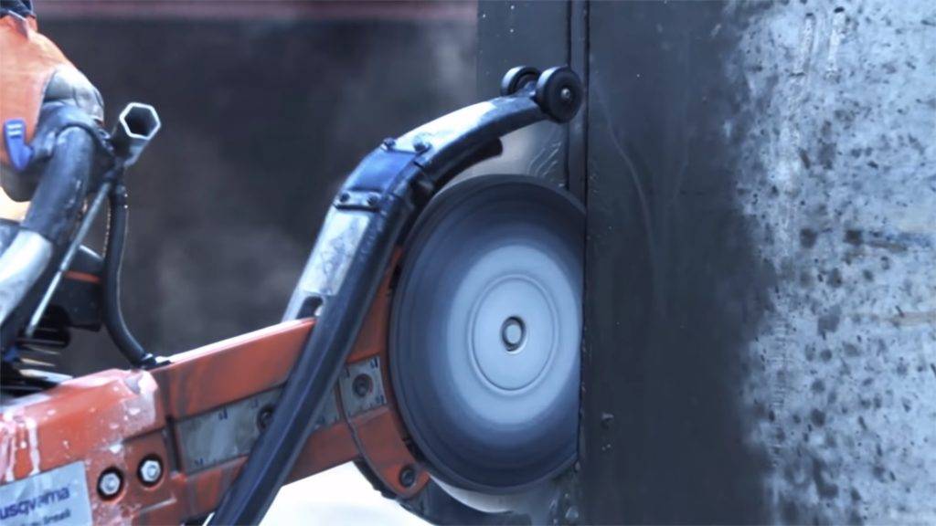 - количество пыли небольшое, если используется технология влажной резки бетона;