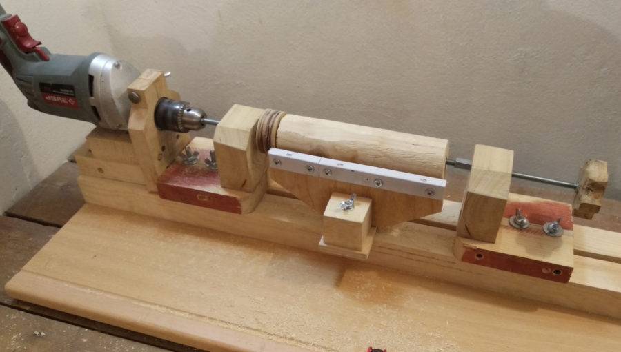 При изготовлении изделий из дерева трудно обходиться без токарного станка. Его можно соорудить своими руками. Для станины идеально подойдет ровный деревянный верстак. В качестве передней бабки и привода вращения можно использовать шуруповерт. В деревянную постель, сделанную из бруска по форме шуруповерта, нужно уложить инструмент и зафиксировать хомутом. Брусок можно закрепить струбциной, а при постоянном использовании станка прикрутить саморезами. В патрон необходимо вставить зубовую оправку. Задняя бабка выполняется из двух брусков с регулировочным винтом, который затачивают под конус. Устанавливается она напротив закрепленного шуруповерта так, чтобы ось инструмента совпадала с осью регулировочного винта задней бабки. Конструкцию заднего упора закрепляют струбциной. Если планируется обрабатывать крупные детали, то крепление должно быть более надежным. Подручник тоже можно изготовить из бруска, закрепив его к верстаку струбциной. Примитивный токарный станок для домашней мастерской готов.