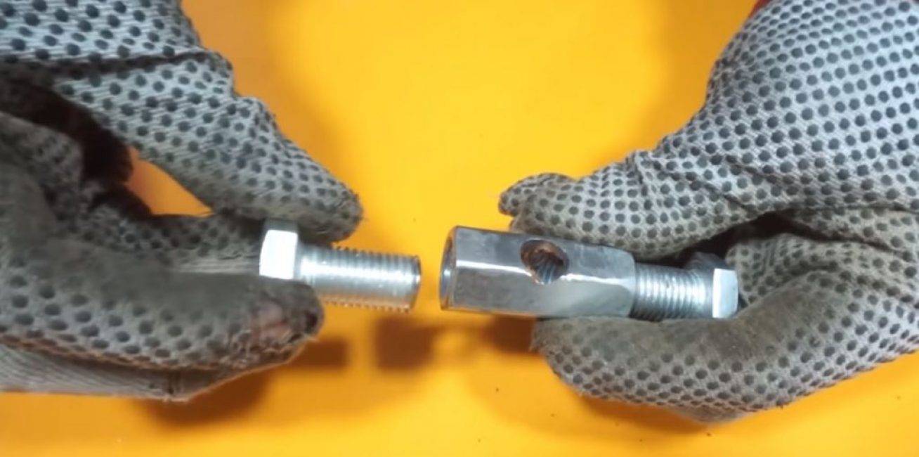 С двух сторон в гайку вкручиваем болты.