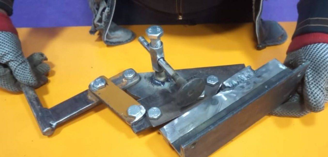 Так как представленная конструкция довольно мала, она крепится на верстаке в тисках. Можно установить инструмент на верстак стационарно. Для этого основание приваривается к уголку, который винтами крепится к верстаку. Чтобы отрегулировать соотношение лезвий используются прокладки.