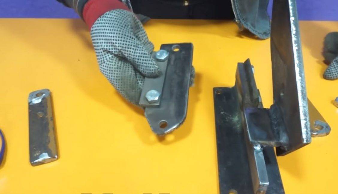 Пластины крепим между собой с помощью болта и гайки.