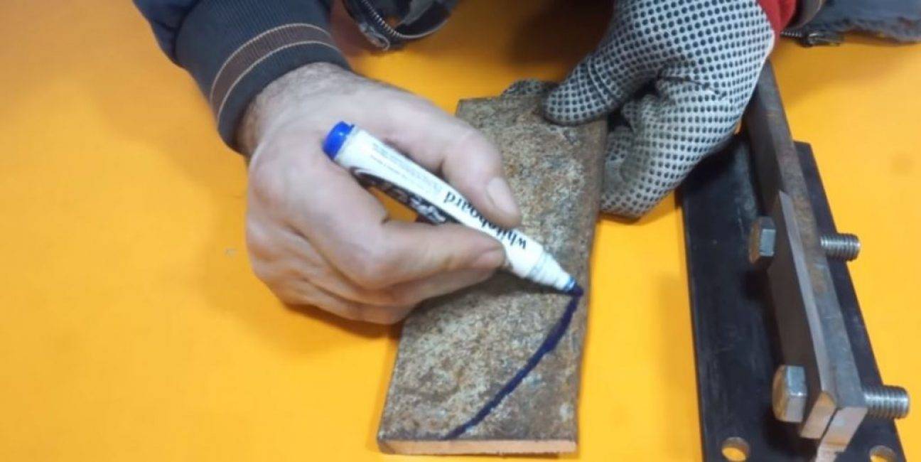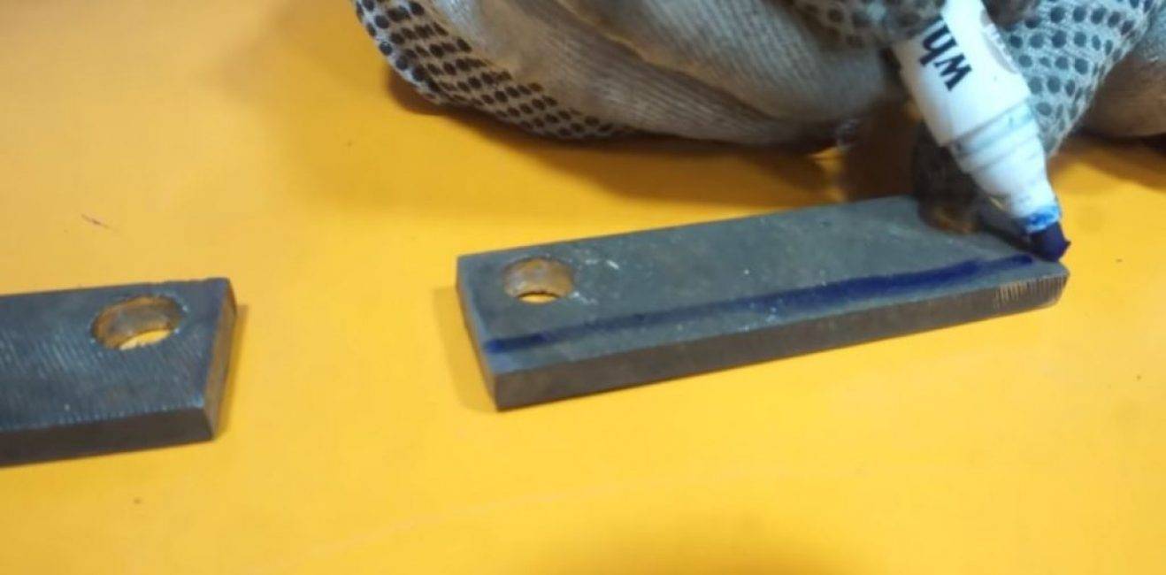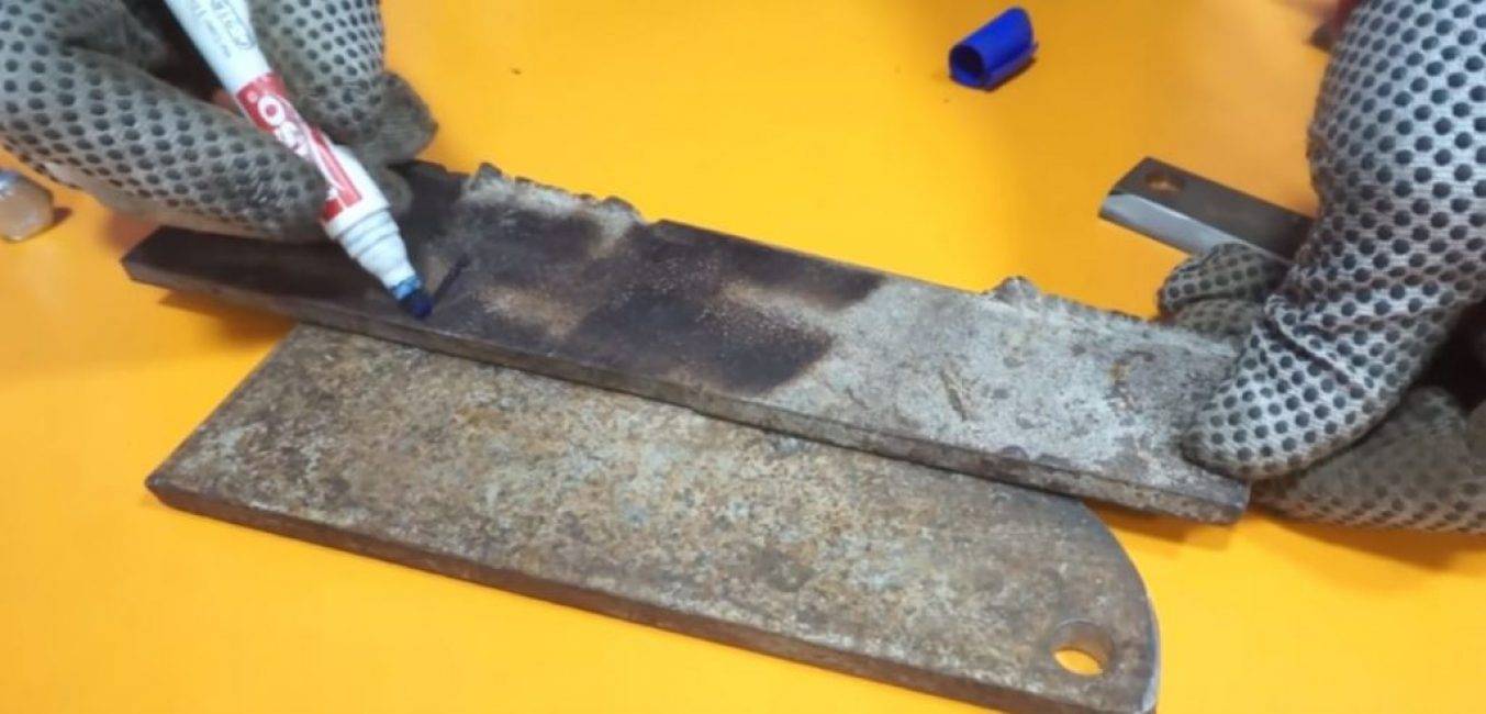 Маркером на обеих заготовках отмечаем линию, до которой будем затачивать режущую кромку.