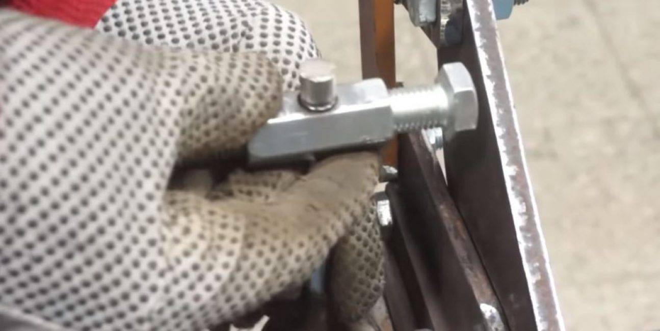 Для соединения полученных пластин делаем в них сквозное отверстие и соединяем их с помощью болта и гайки. На узкой пластине по две стороны от места соединения стачиваем углы для ее свободного движения.