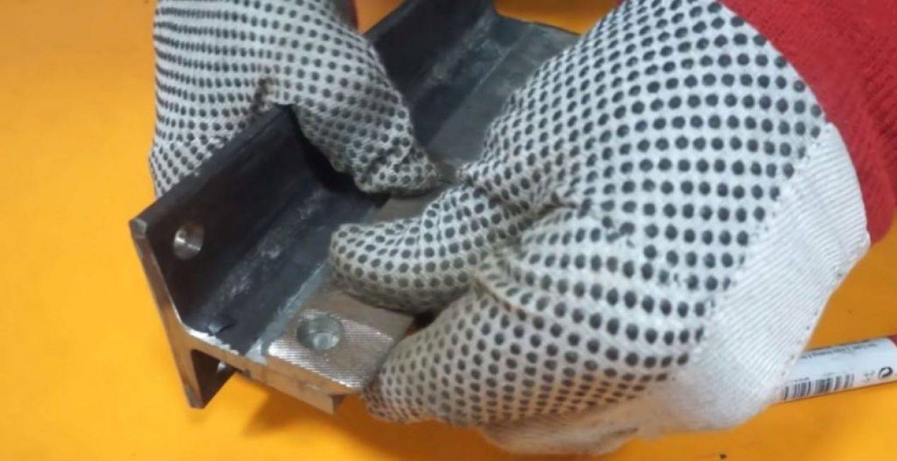 Приложив один из получившихся ножей к краю вертикальной части тавровой балки, намечаем места будущих креплений.