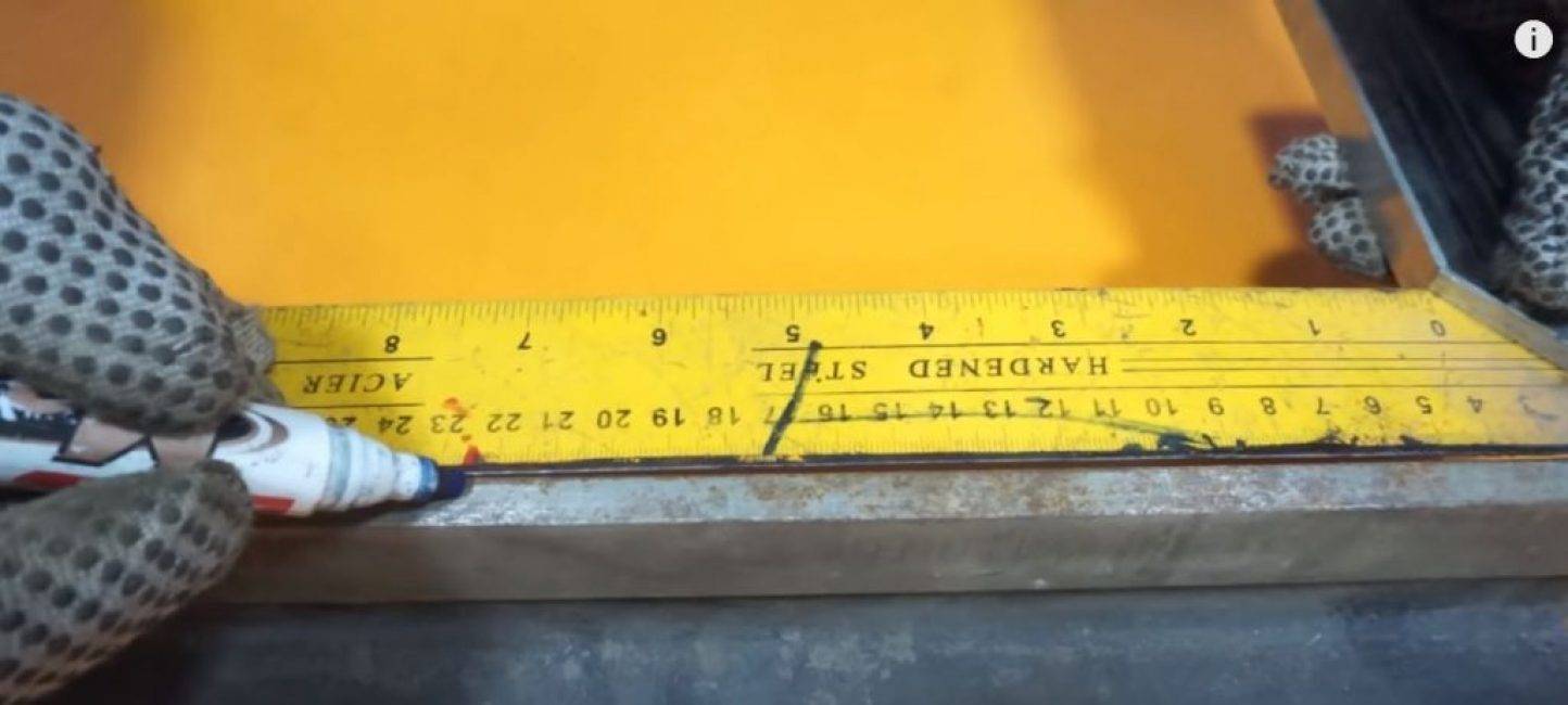 На тавровой балке отмеряем 23 см и маркером делаем отметку.