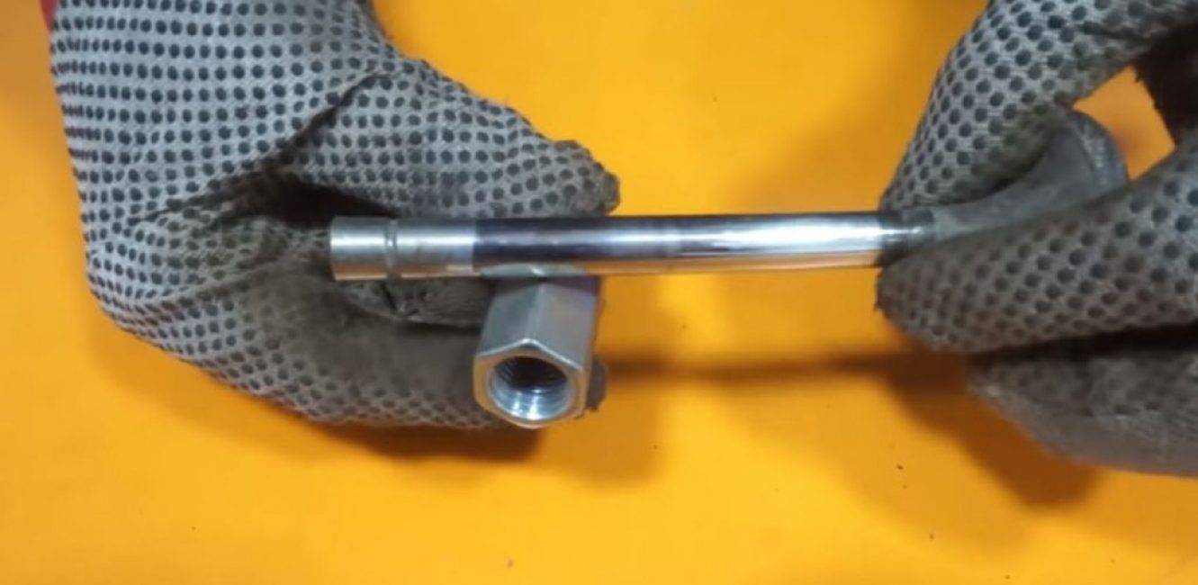 В длинной гайке намечаем середину и просверливаем сквозное отверстие, соответствующее по диаметру клапану двигателя внутреннего сгорания.