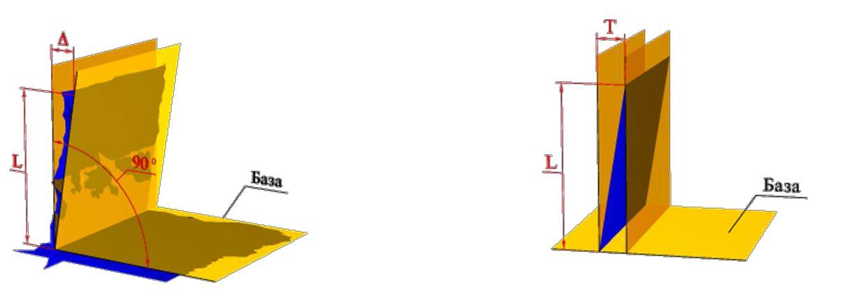 Отклонение от перпендикулярности плоскостей — отклонение угла между плоскостями от прямого угла (90°), выраженное в линейных единицах Δ на длине нормируемого участка.