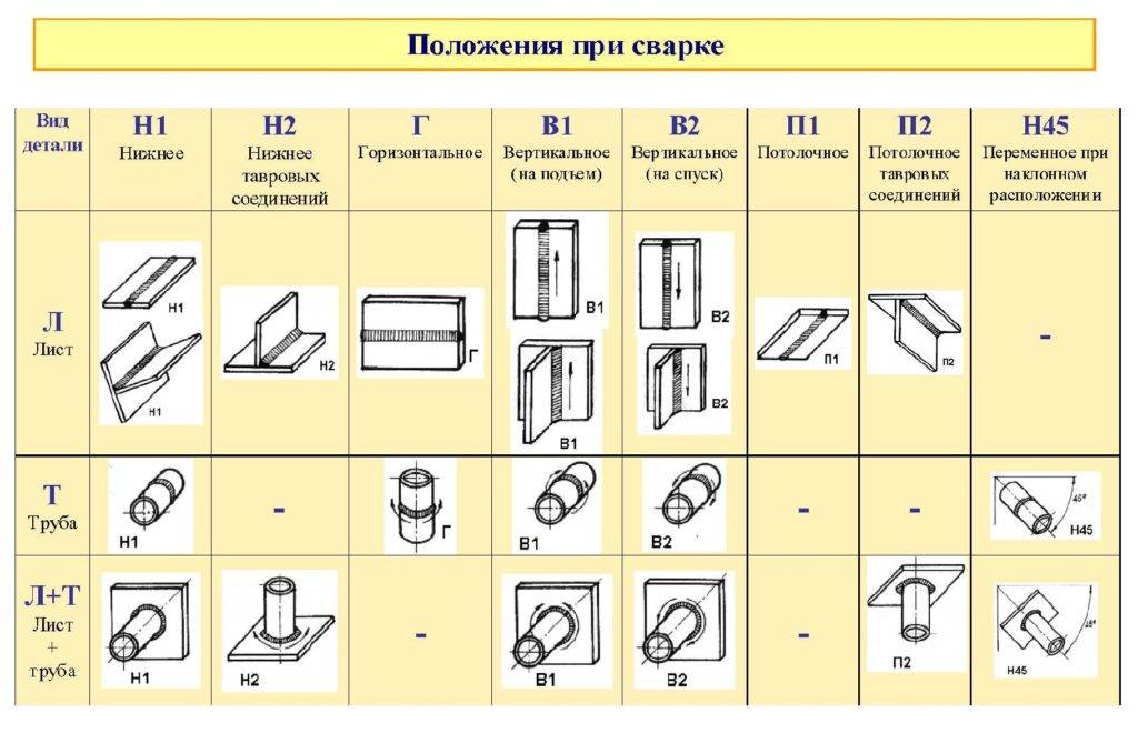 В зависимости от пространственного положения сварного шва приемы сварки и техника будут отличаться