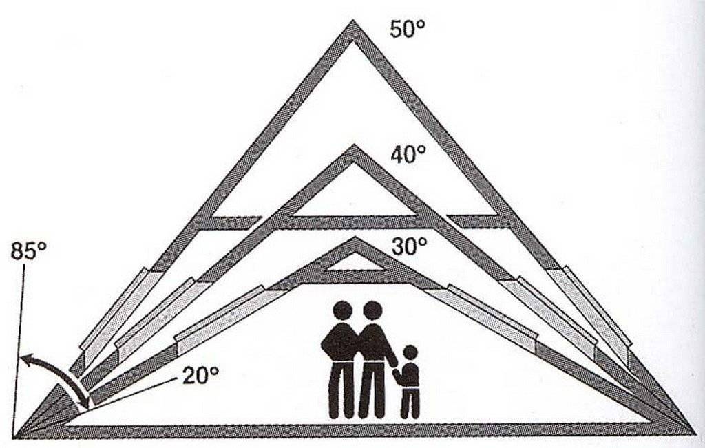 Самая распространенная форма фронтона двускатной крыши, представляющая равнобедренный треугольник. Как правило, угол наклона боковых сторон кровли по отношению к земле составляет 15, 30 или 45°.