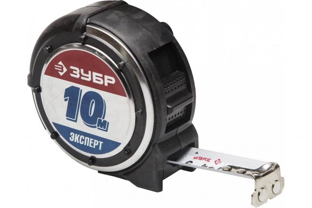 Продукт популярной российской марки ЗУБР подходит для профессионального применения. При использовании этой рулетки высокое качество линейных замеров обеспечено. Мерительное полотно стальное, корпус из ударопрочной прорезиненной пластмассы. Длина его 10 м, ширина 25 мм. Благодаря эргономичной форме устройство не выскальзывает из рук, очень удобно в эксплуатации.