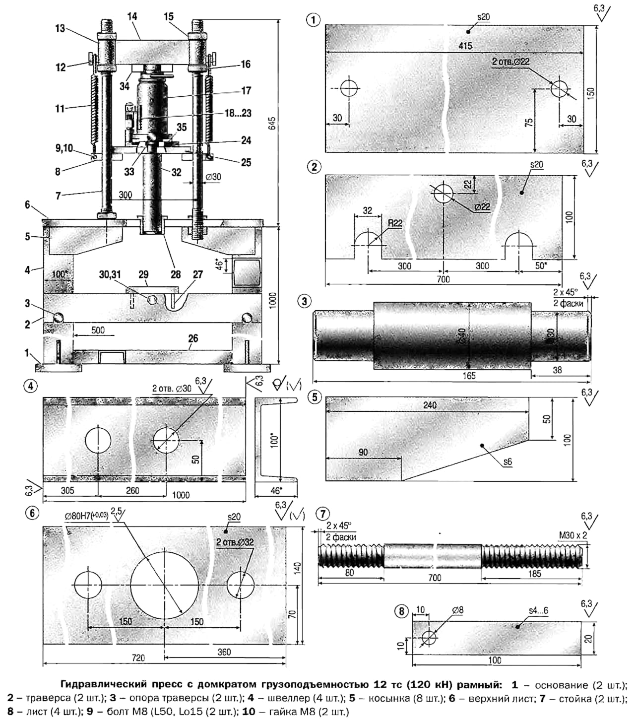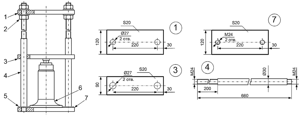 Чертежи производственно-технологического гидравлического пресса из домкрата с усилием в 12 тс