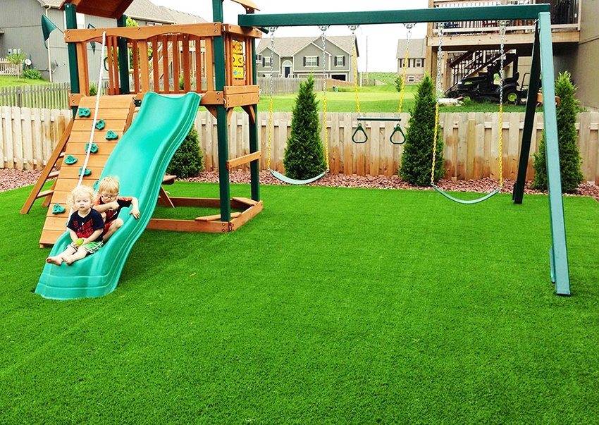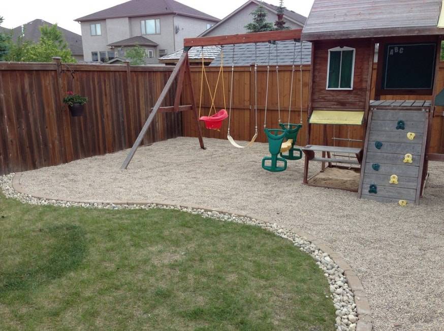 Важно! Чтобы территорию можно было использовать зимой в качестве катка или хоккейного корта, сделайте невысокий забор и расположите территорию недалеко от водопровода. Для маленьких членов семьи нужна специальная детская площадка с качелями, лазалками, горками, песочницей и другими развлечениями