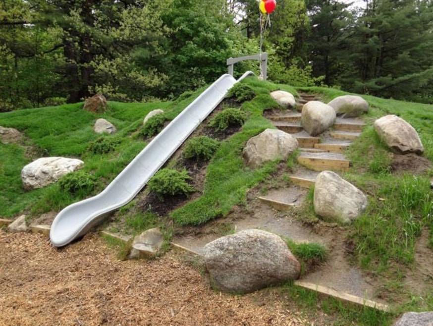 Горки – это элемент, от которого захватывает дух каждого ребёнка. А если в дополнении обустроить ещё упрощённые лабиринты, то малыши забудут о существовании взрослых.