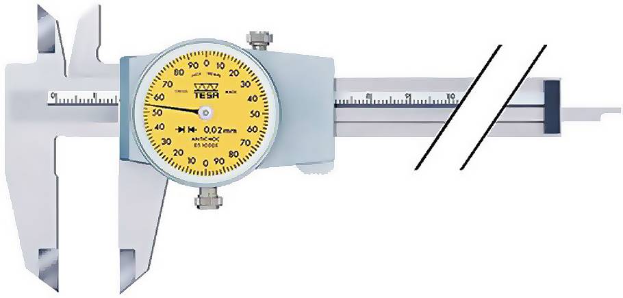 Для этого штангеля оно составляет 0,02 мм. К плюсам такого исполнения инструмента можно отнести возможность тарирования (физической установки на «0» шкалы циферблата) при сведенных губках с фиксацией зажимным винтом – здесь он снизу циферблата. К явным же недостаткам – исключительную аккуратность в обращении. Слишком велик риск повреждения инструмента при разбивании стекла циферблата. А ведь особую бережность в обращении со штангенциркулем при проведении слесарных, токарных или фрезерных работ обеспечить практически невозможно, поэтому ШЦК все чаще снимается с производства ввиду малого спроса, хотя в домашних условиях, при бережном отношении он может многие годы служить верой и правдой.