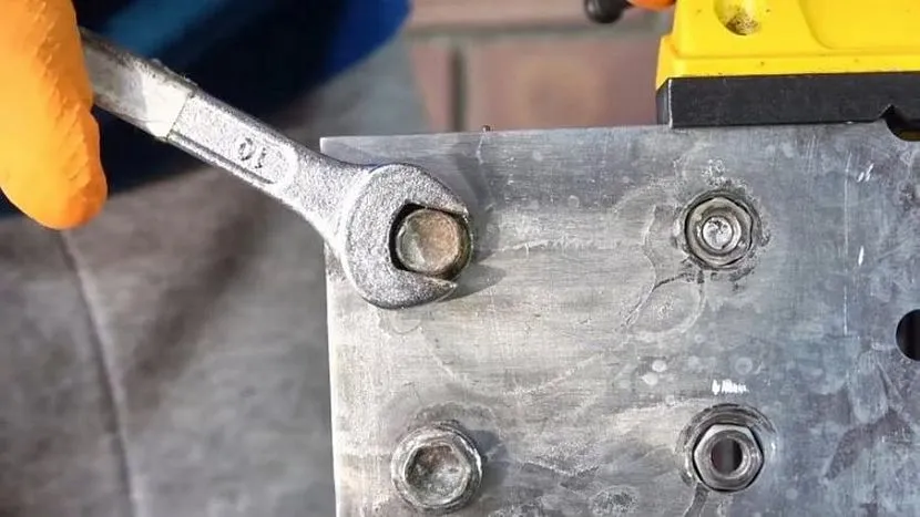 Если все эти способы оказались безрезультатными, то крепление нужно будет разрушать. Сделать это можно несколькими способами. Если вы работаете с болтом, нужно его высверлить и нарезать новую резьбу. Также можно использовать специальный инструмент, например, съёмник гаек. Он затягивает деталь, под давлением она трескается, благодаря чему гайка может быть снята обычным ключом. Наиболее радикальным способом является применение болгарки. Достаточно просто распилить болт вдоль, используя диск по металлу.