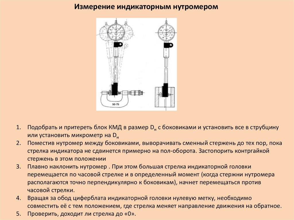 нутромер при этом необходимо покачивать, в целях нахождения наибольшего размера