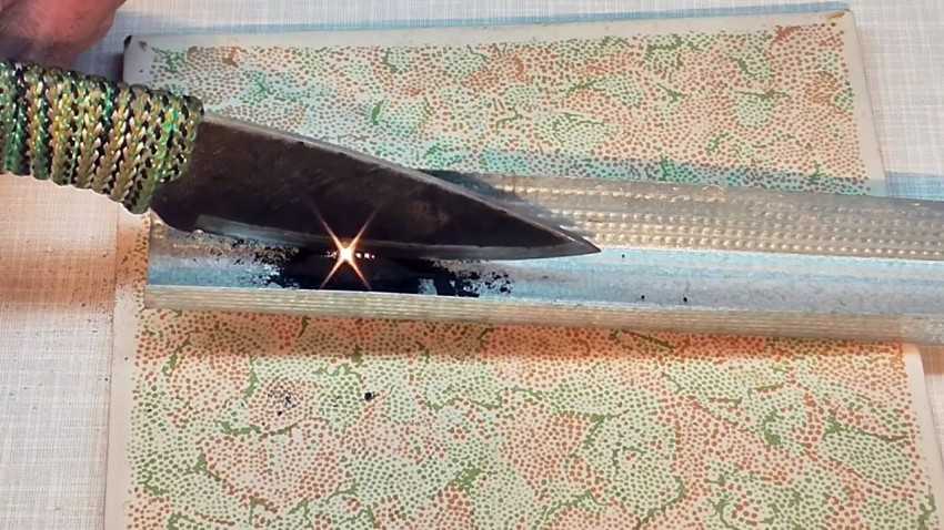 Проверку на закаливание можно провести в домашних условиях, но этот метод довольно жёсткий. Для того чтобы сделать этот процесс, понадобится ещё один клинок, который выступит в роли тестера. Проводятся все процедуры, связанные с закаливанием.