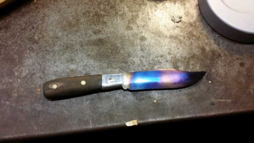 - низкотемпературный – нагрев до 250°С, что придаст детали хорошую износостойкость, однако сделает его непригодным для сильных силовых нагрузок. По сути, идеальный вариант для клинка ножа;