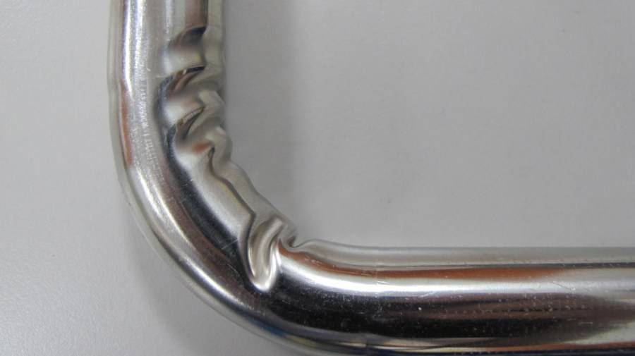 Визуально, кажется, при сгибе металлической трубы все происходит хорошо и труба не деформируется. Но на самом деле, во внутренней стороне сгиба образуются складки, тем самым уменьшая радиус трубы, а на внешней стороне материал сильно подвергается растяжке, за счет чего существует вероятность появления микротрещин.