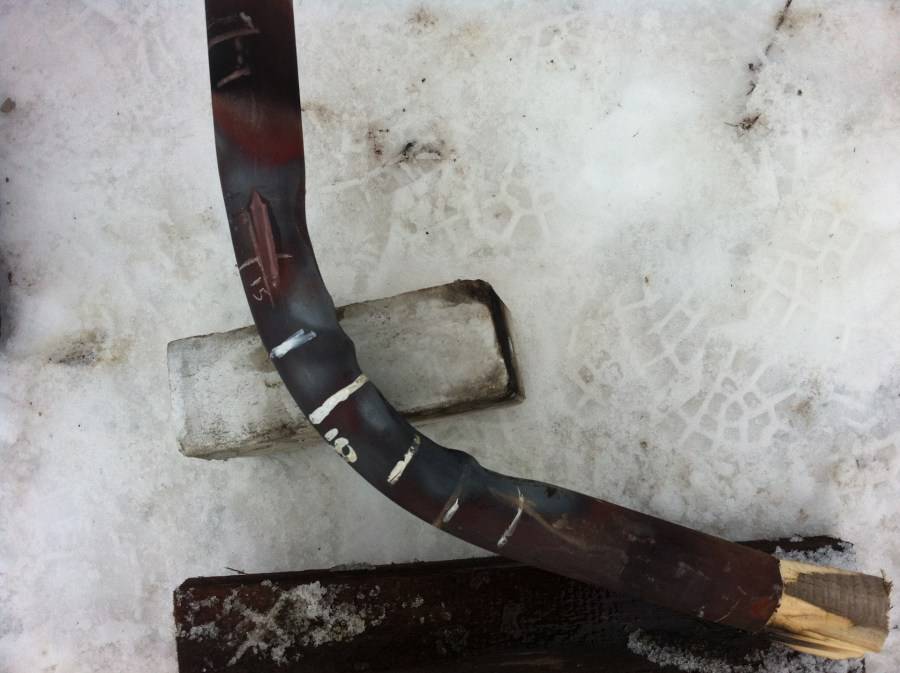 Далее вся работа выполняется вручную. Если металл мягкий, то изделие можно согнуть в руках. Но если труба довольно жесткая, то можно вставить ее в закопанную трубу большего диаметра и по средствам рычага постепенно выполнять изгиб. Зимой можно прибегнуть к другому способу. Заливается в трубу вода, и ожидают, пока та замерзнет. Далее можно гнуть изделие. Когда изгиб будет выполнен, то лед размораживается и вода вытекает.