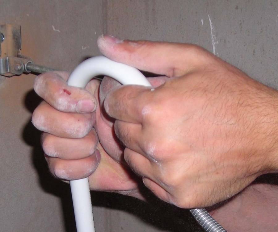 Металлопластиковые трубы нужно сгибать во многих местах при оборудовании теплого пола. Это необходимо для того, чтобы максимально заполнить трубами пространство на полу. Конечно же, можно сгибать трубы вручную, но не более чем на 15 градусов на каждые два сантиметра. Но для того чтобы достичь большего изгиба, нужно заполнить трубу проволокой, которая не даст изделию сломаться в месте изгиба.