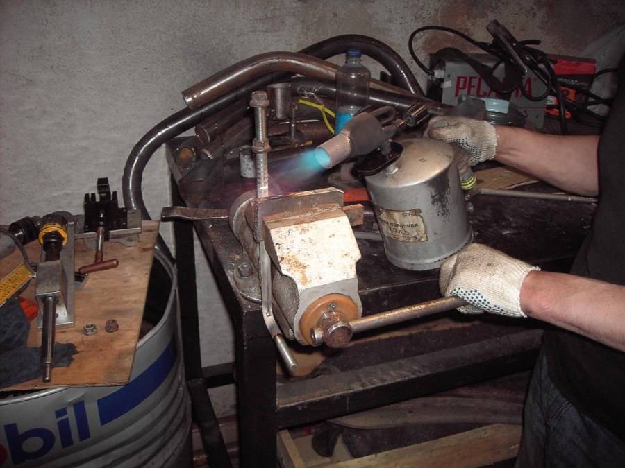 Для того чтобы изгибать металлические трубы, то без газовой горелки или паяльной лампы не обойтись. Перед тем как гнуть трубу, нужно наполнить ее песком. Далее один конец крепится в тисках. Начинаем нагревать изделие. Если труба стальная, то ее красный цвет при нагревании является знаком того, что трубу можно изгибать. Алюминий не покраснеет. Потому проверяем степень нагревания с помощью листа бумаги. Если он начнет дымить, значит греть больше трубу не нужно. Чтобы не обжечься, необходимо работать в перчатках.