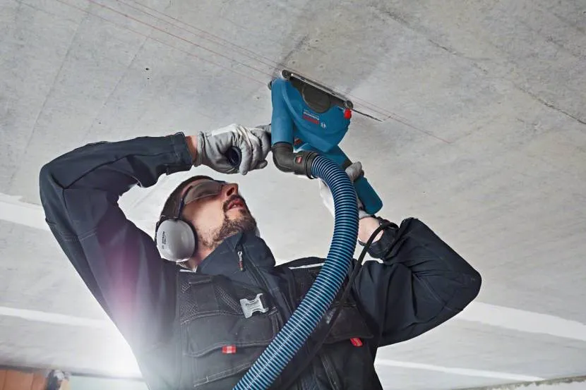 К тому же мастеру и всем окружающим приходится применять защитные средства в виде респираторов и очков или специальных масок. Ведь необходимо уберечь легкие от попадания в них пыли, а также обезопасить лицо и глаза от летящих мелких осколков бетона. И при выполнении подобной работы при помощи зубила и молотка или применяя болгарку, от таких мер никуда не деться.