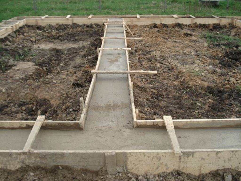 Для одноэтажной постройки нет необходимости делать сложный фундамент. Достаточно вырыть небольшую по глубине траншею в соответствии с предписаниями по типу грунта.
