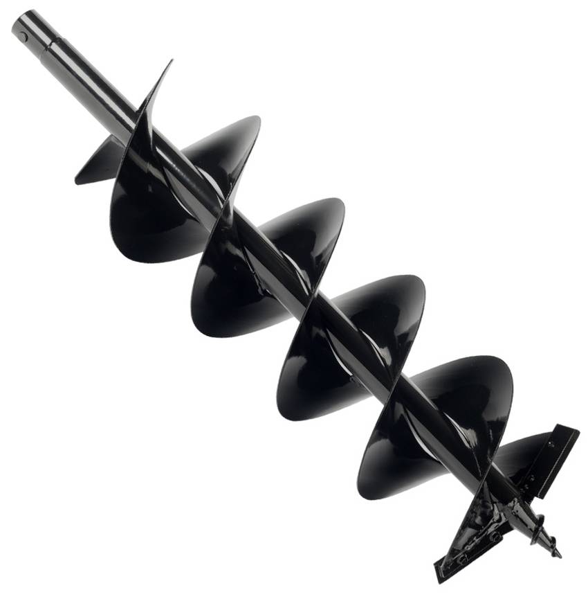 Шнековый бур оборудован, помимо режущих лопастей, винтовым шнеком. Благодаря разъемной конструкции и нескольким фрезам обеспечивается высокая скорость работ. Увеличение частоты вращения насадки способствует заглублению инструмента на определенную глубину.