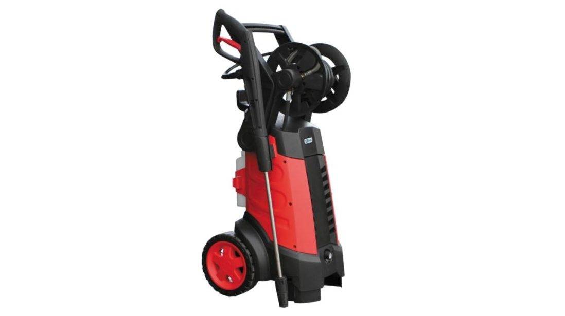 Конструкцией предусмотрены колеса для перемещения и удобная ручка. Шланг высокого давления имеет длину в 5 м, для его хранения предусмотрен удобный крюк-держатель. Пистолет оснащен стандартной насадкой. Но вот цена на товар, одна из самых высоких даже в бюджетном сегменте, около 10800 рублей. Да и вес в 18 кг не всех покупателей устраивает.