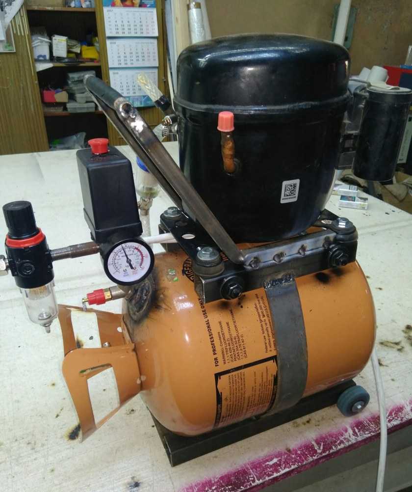 Воздушный компрессор из деталей холодильника и огнетушителя