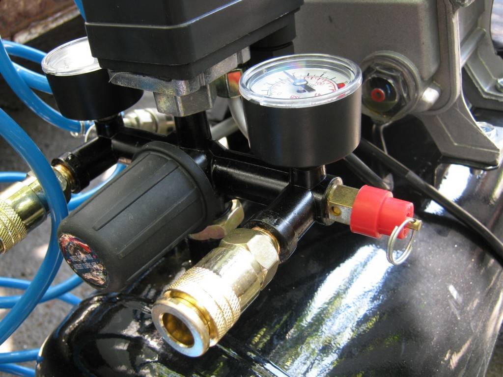 Создаваемое в ресивере давление контролируем при помощи манометра. Убедившись, что при достижении некоторого уровня реле отключает двигатель, проверяем герметичность воздуховодов и соединений. Это легко сделать при помощи мыльного раствора.