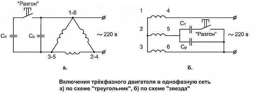 Подключение однофазного двигателя через конденсатор — 3 схемы