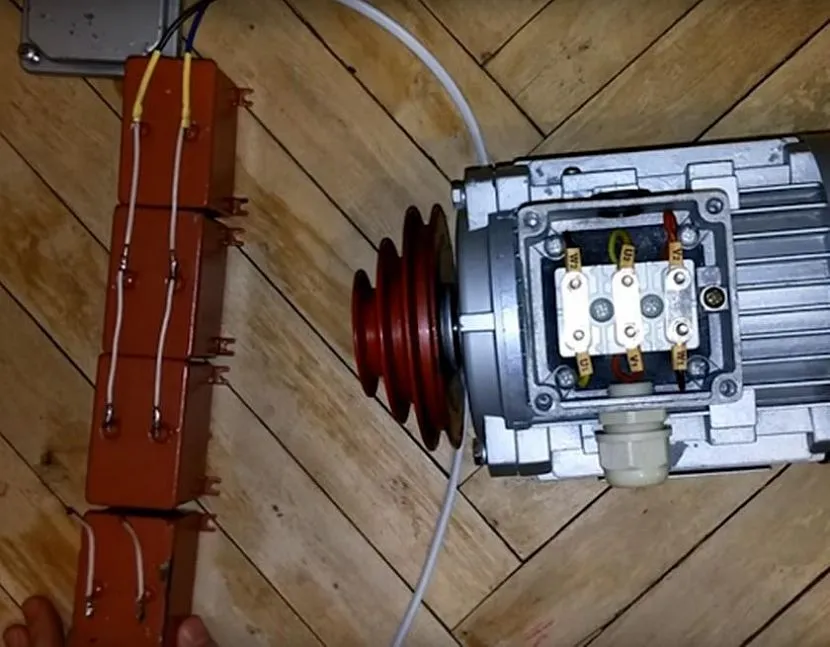 - Для запуска электромашины этого типа, может быть использован пусковой резистор. Его следует последовательно подключить к пусковой обмотке. Таким образом, можно получить сдвиг фаз 30° между токами обмоток, чего будет вполне достаточно для старта механизма.