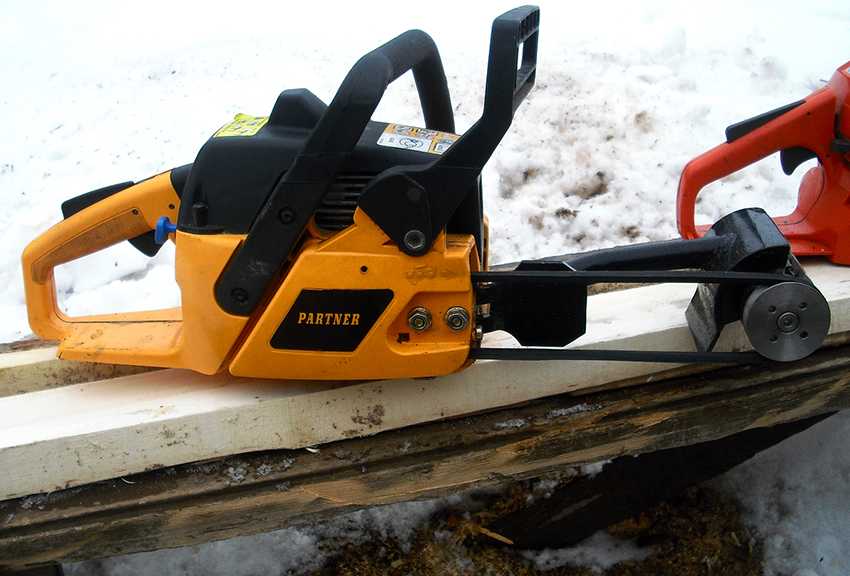 Позволяет использовать бензопилы в качестве болгарки. Работает посредством ременной передачи.