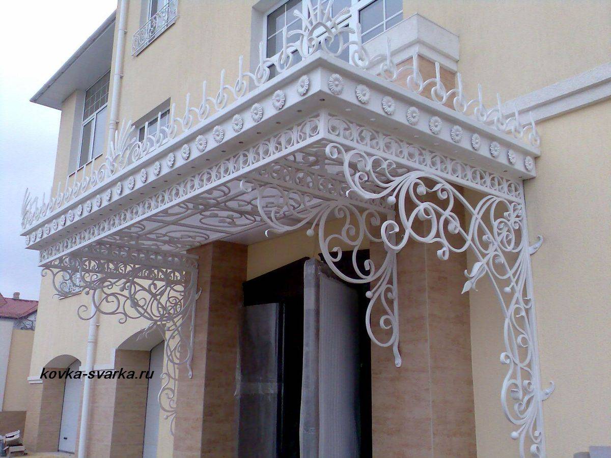 Крыльцо является придомовой пристройкой, обеспечивающей завершенный вид фасаду и гарантирующий удобство передвижения при входе-выходе из дома. Для защиты крыльца от погодных воздействий и декорирования экстерьера рекомендуется использовать кованые козырьки. Металлические сооружения над крыльцом могут иметь разнообразные формы. Возведение на крыльце ограждений и перил позволит получить единую композицию, которую принято называть «входная группа».