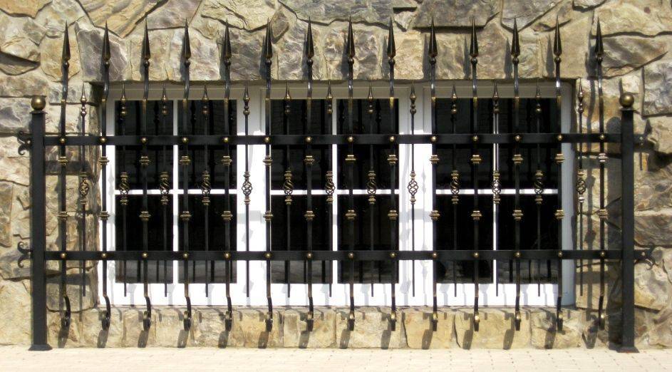 • По назначению: охранные, декоративные, декоративно-охранные. Отличие разновидностей заключается в интервалах между прутами, у защитных изделий расстояние небольшое, что исключает проникновение сквозь решётку.