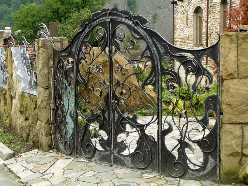 Для любителей готики подойдут кованые ворота, отличающиеся острыми и строгими линиями. В них преобладают орнаментальные растительные узоры.