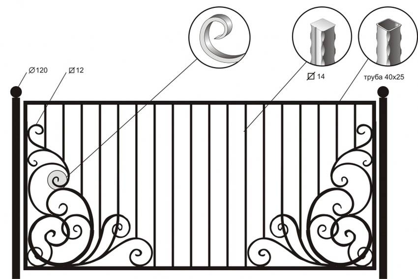 Комбинированные изделия совмещают в себе характеристики первых двух разновидностей. Основой такого ограждения служат стандартизированные элементы, выполненные с помощью штамповки. Художественные кованые элементы используются только в тех частях ограждения, которые подходят для этого больше всего.