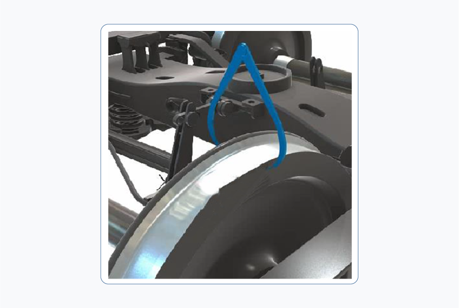 - Установите шаблон движком на поверхность катания, прижав упором на вертикальной части к внутренней грани обода колеса.
